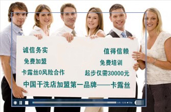 3.卡露丝干洗加盟店统一使用品牌logo,公司总部会进行销售质量和服务等方面的知道。公司统一对洗衣店进行管理和业务水平的提高。让整个加盟店,形成全国统一的高水平,高质量,高端次的形象。更加的有利于整个品牌的市场竞争力。公司总部会在加盟商开业之前和营业都进行多方面的指导,全心全意的为加盟商做很切实的服务。